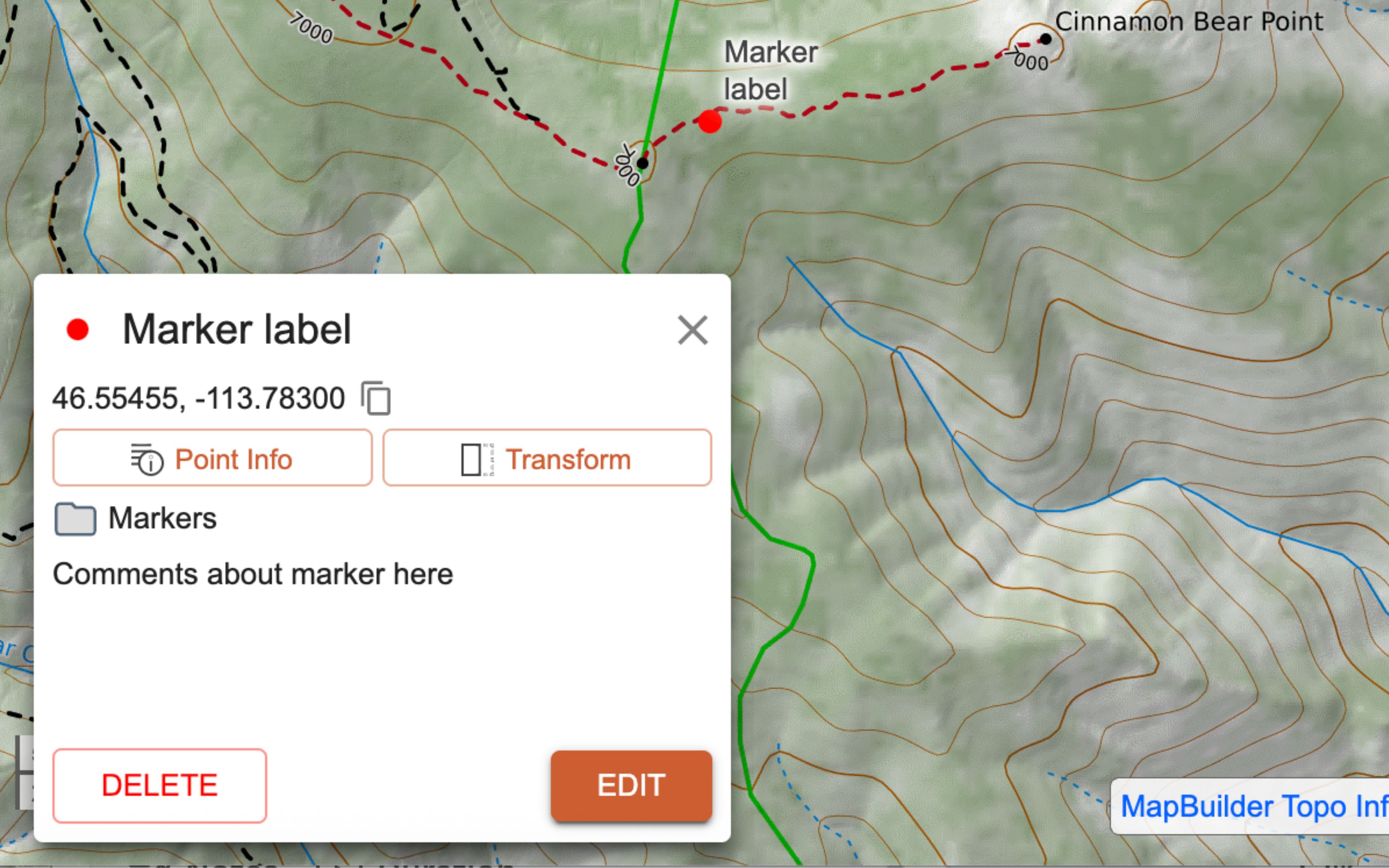 And an option for deleting the marker.