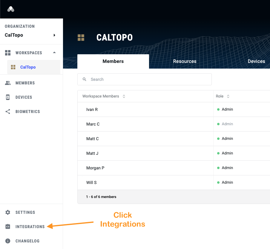 The next steps take place on the Everywhere Hub page. First you'll need to log into your Team's Everywhere Hub account. Then follow the steps outlined below for each device associated with your Everywhere Hub team that you want to appear in CalTopo's Shared Locations overlay.